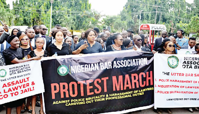 The lawyers who are members of about five branches of the NBA marched from its Ikeja secretariat, while displaying banners, to the Command headquarters where the state Commissioner of Police, Adegoke Fayoade, addressed them.